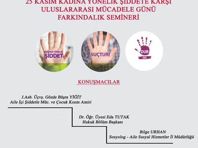Kadınların güçlenmesine destek olmak ve kadına yönelik şiddetle mücadeleye dikkat çekmek için farkındalık seminerimize tüm öğrencilerimiz ve akademik personellerimiz davetlidir.