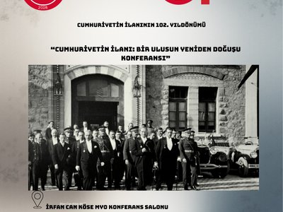 Cumhuriyetimizin ilanının 102. yılına ulaşmasının onur ve coşkusunu yaşarken, Ulu Önder Gazi Mustafa Kemal Atatürk’ün bizlere miras bıraktığı Cumhuriyet’i anlamak ve gelecek nesillere aktarmak amacıyla meslek yüksekokulumuzda bir konferans programı düzenlenecektir.
