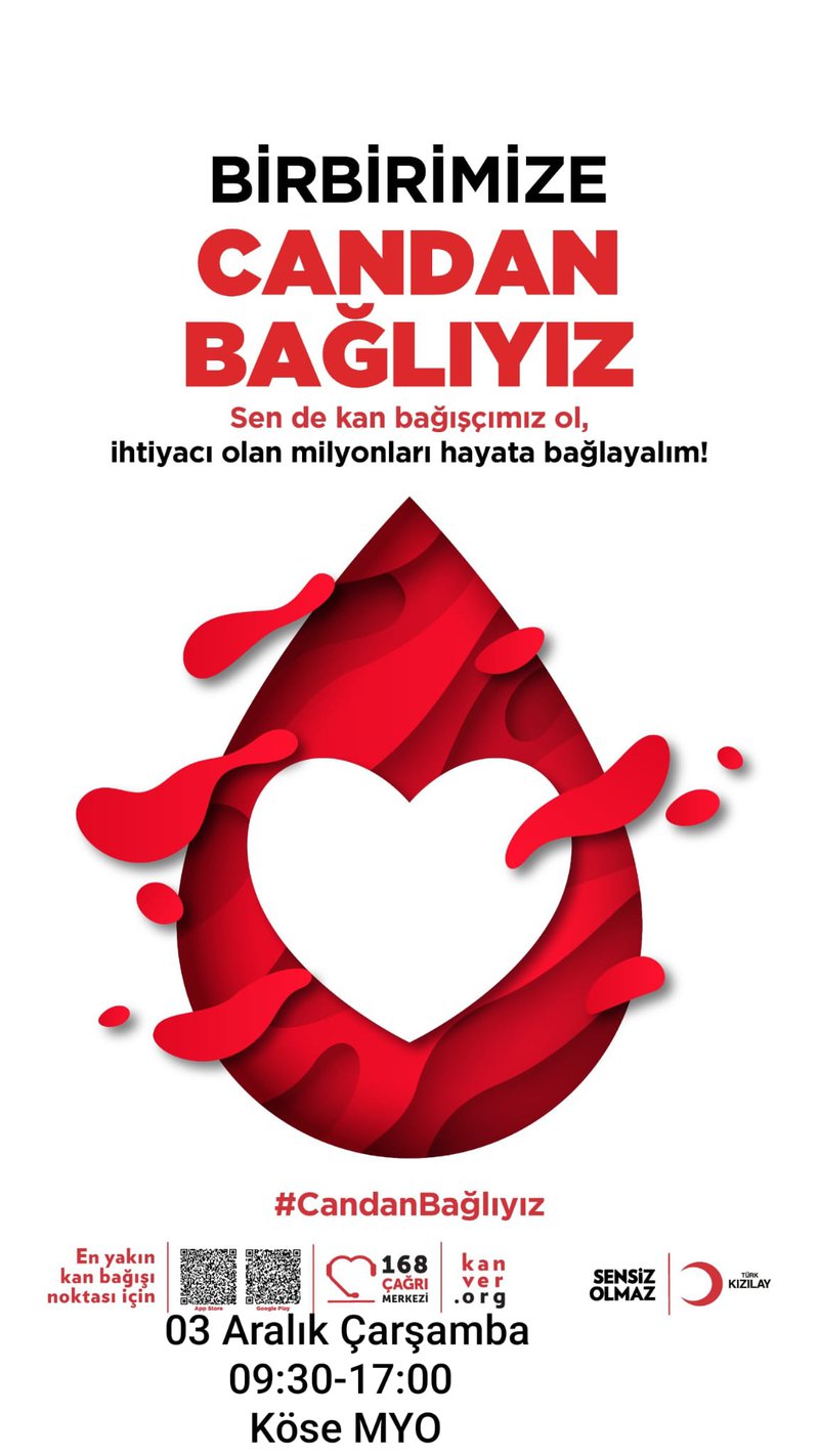 “Birbirimize Candan Bağlıyız” sloganıyla Kızılay tarafından düzenlenen kan bağışı kampanyasına seni de bekliyoruz.