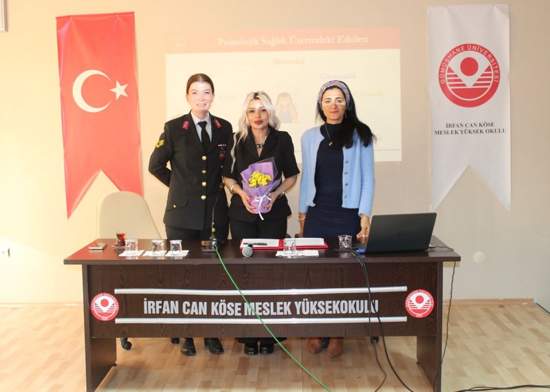 Günün anlam ve önemini vurgulayan güçlü mesajın daha geniş kitlelere ulaştırılması amacıyla konferans salonumuzda düzenlenen seminere; Yüksekokulumuz Hukuk Bölüm Başkanı Dr. Öğr. Üyesi Eda TUTAK, Gümüşhane İl Jandarma Aile İçi Şiddetle Mücadele ve Çocuk Kısım Amiri J. Asb. Üçvş. Gözde Büşra YİĞİT ile Aile ve Sosyal Hizmetler İl Müdürlüğü Sosyoloğu Bilge URHAN konuşmacı olarak katıldı.