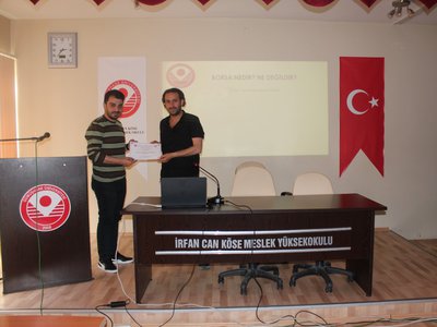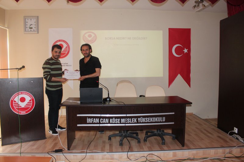 Gümüşhane Üniversitesi İrfan Can Köse Meslek Yüksekokulu Mülkiyet Koruma ve Güvenlik Bölümü Sosyal Güvenlik Programı Bölüm Başkanı Dr. Öğr. Üyesi Şafak Sönmez SOYDAŞ’ın anlatımıyla “Borsa Nedir? Ne Değildir?” konulu bir seminer gerçekleştirildi.