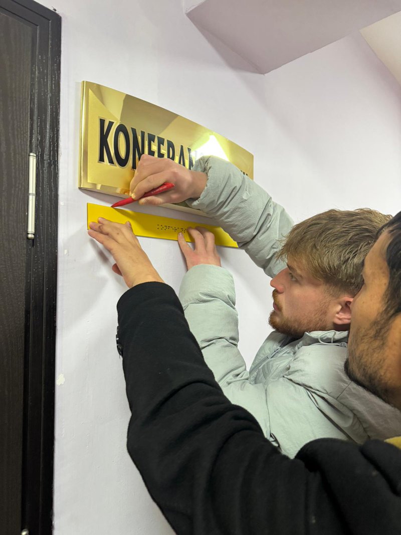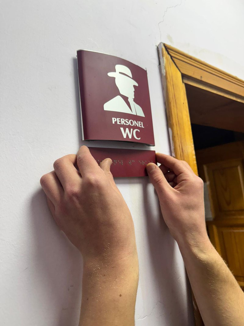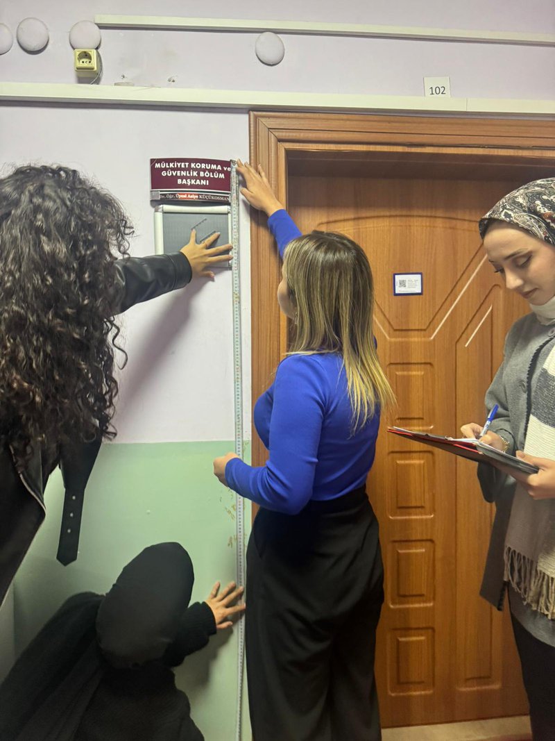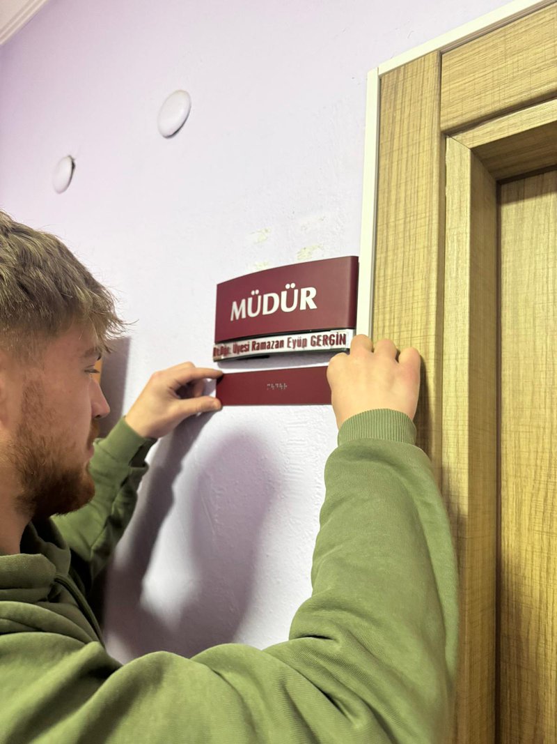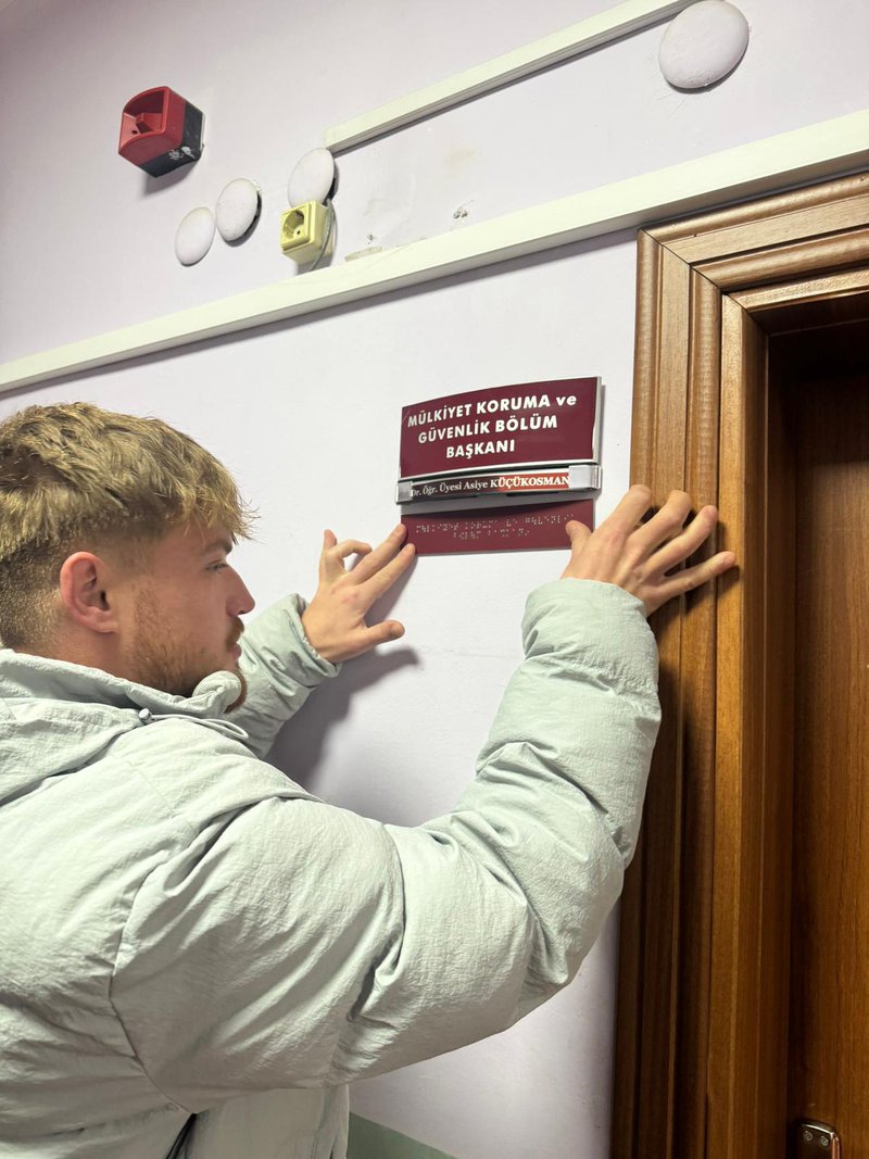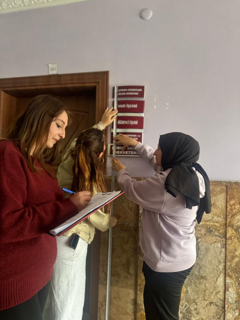 Etkinlik süresince öğrenciler tarafından yürütülen uygulamalı çalışmalar da katılımcılarla paylaşıldı. Bu çerçevede, Meslek Yüksekokulumuz genelinde yapılan saha incelemeleri sonucunda Braille alfabesi kullanılarak toplam 37 adet erişilebilir oda ve birim isimliği alanında uzman kişilerden profesyonel destek alınarak hazırlanmıştır. İsimliklerin hazırlanma sürecinde öğrenciler kat ve birim bazlı ölçümler yapmış, tespitlerini kayıt altına almış ve faaliyet süreci boyunca düzenli raporlamalar gerçekleştirmiştir. Üretim sürecinin sonunda bu isimliklerle, görme engelli bireylerin kampüs içerisinde daha bağımsız ve güvenli hareket edebilmesine katkı sağlanması hedeflenmiştir. Uygulamaya dayalı bu gönüllülük faaliyeti sayesinde öğrenciler, teorik bilgilerini sahada deneyimleme fırsatı bulmuş, toplumsal sorumluluk, empati ve erişilebilirlik bilinci kazanmıştır. Etkinlik, üniversite-yerel yönetim iş birliğinin toplumsal farkındalık oluşturmadaki önemini bir kez daha ortaya koymuştur.
