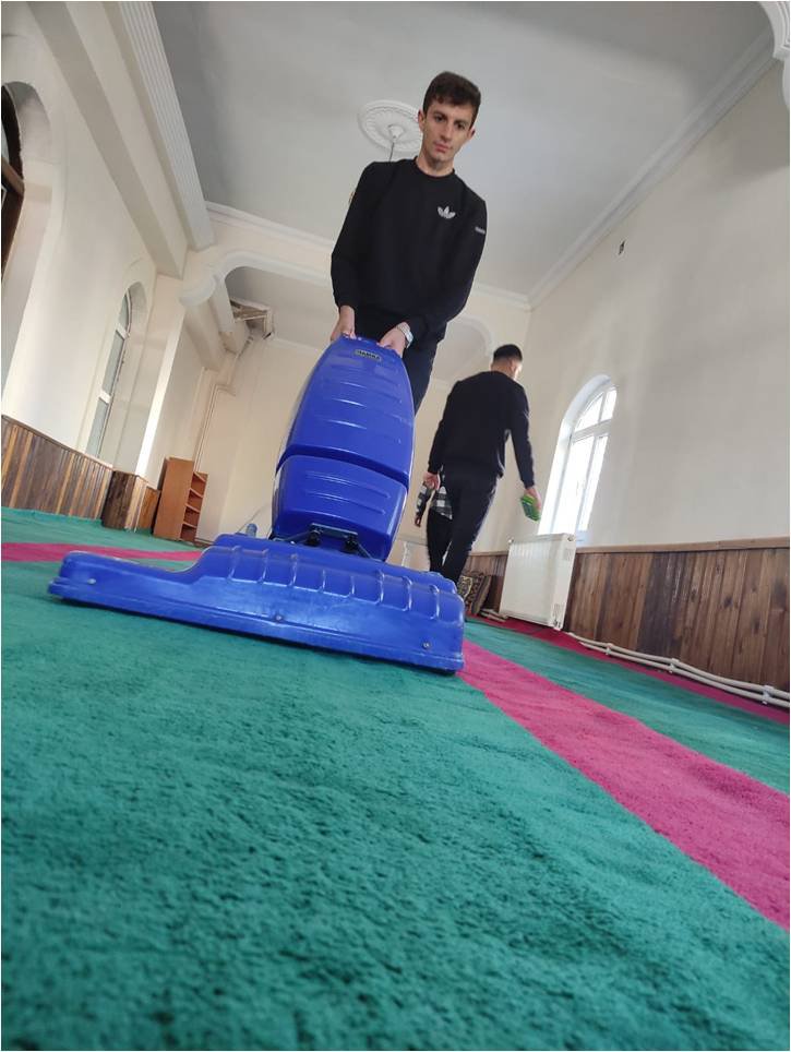 Daha sonra Köse ilçesine sosyal sorumlulukları ile katkı sunmak amacıyla; Köse Merkez Camii temizliğini gerçekleştiren öğrencilerimiz, İbadethane temizliğinin önemine dikkat çekti. Köse Merkez Camii’nde detaylı iç temizlik çalışması gerçekleştirerek; camlardan, ayakkabılığa, mihrap ve kürsüden avizelere kadar her yeri titizlikte temizlediler. Aynı zamanda cami zemininde bulunan halıları da süpürerek camiye gelen vatandaşların rahatlıkla ibadet etmeleri için çaba verdiler.