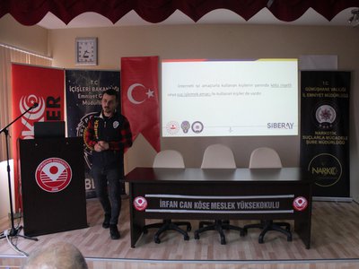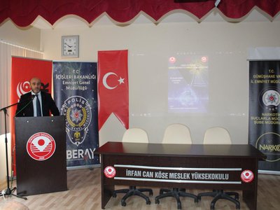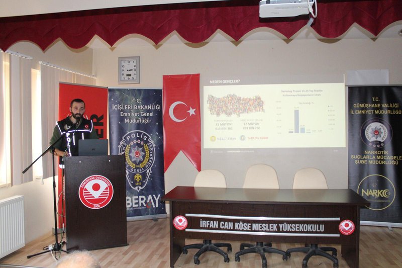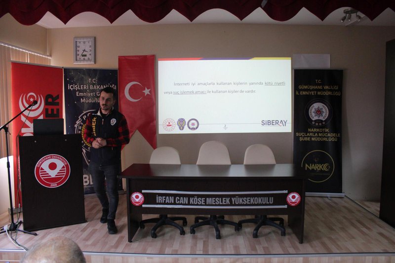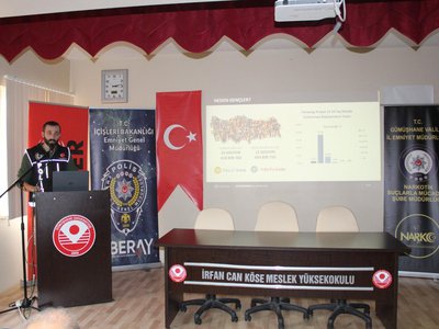 T.C. İçişleri Bakanlığı Emniyet Genel Müdürlüğü, Gümüşhane Emniyet Müdürlüğü ve İrfan Can Köse Meslek Yüksekokulu işbirliğiyle 14.12.2022 saat 14:30’da Meslek Yüksekokulumuz Konferans Salonu’nda toplumsal bilinçlendirme eğitimi düzenlendi.