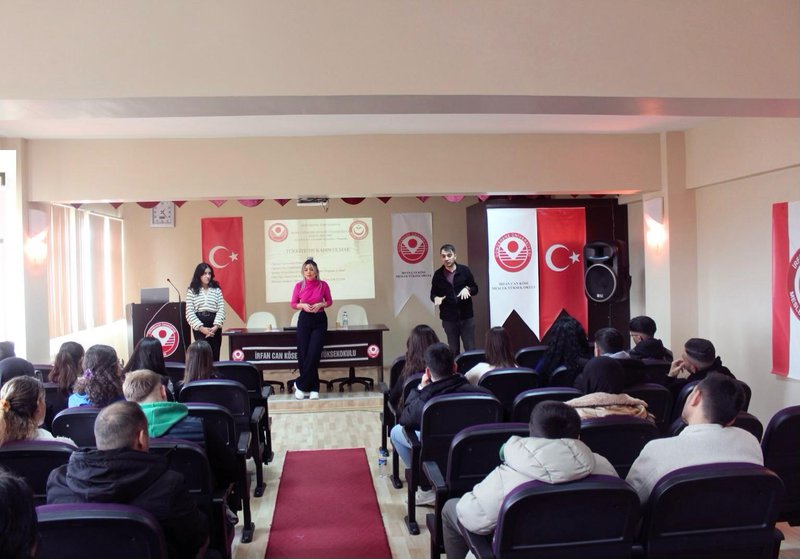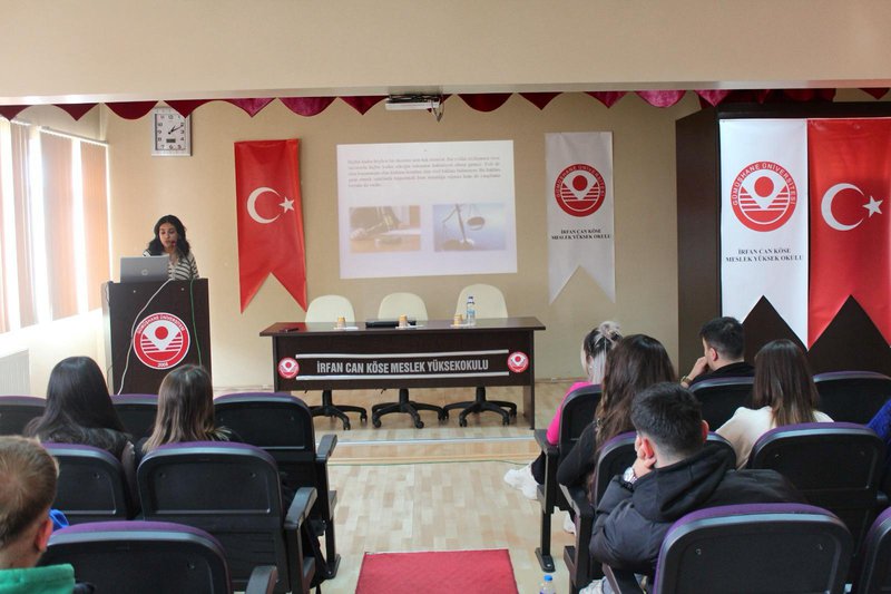 19.12.2023 tarihinde İrfan Can Köse MYO Konferans Salonu'nda gerçekleştirilen etkinlikte, öğrencimiz tarafından kadına yönelik şiddet konusunda toplumsal farkındalığın arttırılmasına yönelik bilgiler paylaşılırken programa, Ceza İnfaz ve Güvenlik Hizmetleri Programı 1. ve 2. sınıf öğrencileri yoğun ilgi gösterdi.