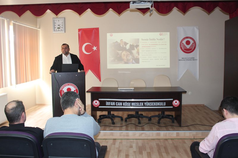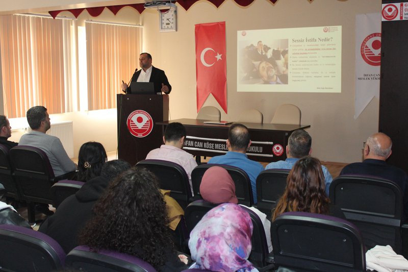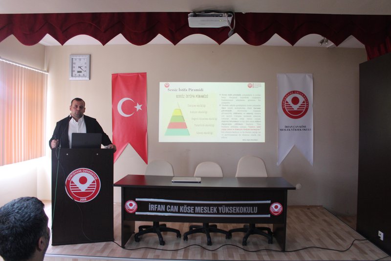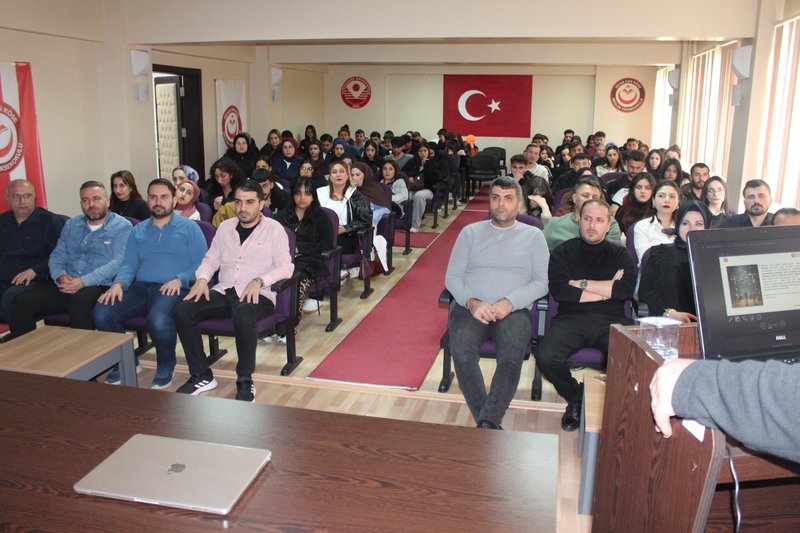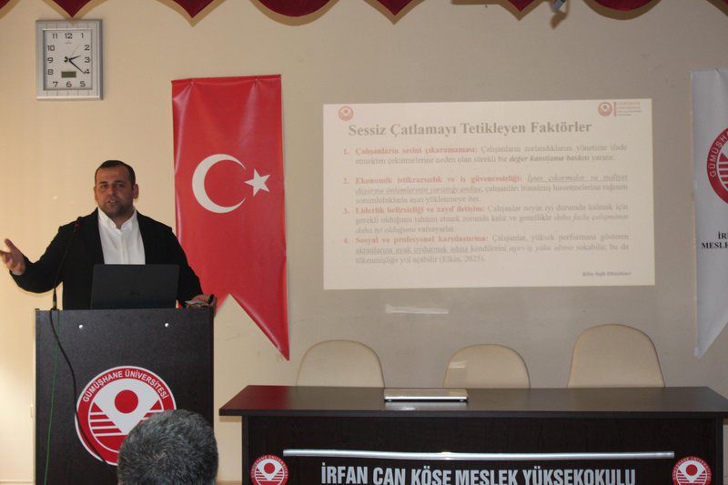 14 Nisan 2026 tarihinde saat 14.00’te Meslek Yüksekokulu konferans salonunda gerçekleştirilen programa akademik ve idari personelin yanı sıra çok sayıda öğrenci katılım sağladı. Programda, kurumsal iletişimin önemi, bu süreçte dikkat edilmesi gereken temel ilkeler ile sağlıklı yürütülmeyen iletişim süreçlerinin ortaya çıkardığı “sessiz istifa” ve “sessiz çatlama” kavramları ele alındı. Ayrıca, kurumsal yönetimlerin ve çalışanların nasıl bir yol izlemeleri gerektiğine ilişkin çözüm önerileri paylaşıldı. Dünyada ve Türkiye’de gerçekleştirilen araştırmalardan elde edilen bulgular doğrultusunda, söz konusu sorunların birçok çalışan tarafından deneyimlendiği ve kurumların bu konulara daha duyarlı yaklaşmasının önem taşıdığı vurgulandı.