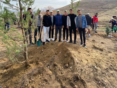 İrfan Can Köse Meslek Yüksekokulu Mülkiyet Koruma ve Güvenlik Bölümü Sosyal Güvenlik Programı gönüllülük çalışmaları kapsamında Bölüm başkanımız Dr. Öğr. Üyesi Şafak Sönmez SOYDAŞ ve Öğretim Görevlisi Tuncay ÇELİK koordinesinde bölüm öğrencilerimizin katılımı ile 11 Kasım 2023 tarihinde milli ağaçlandırma günü dolayısı ile Köse İlçesi Kayadibi Köyünde diktiği fidanlar yanmasın diye çıkan yangına müdahale ettiği sırada hayatını kaybeden 79 yaşındaki Ömer Bulut adına oluşturulan hatıra ormanına 2 bin 23 adet fidan dikimine katıldı.