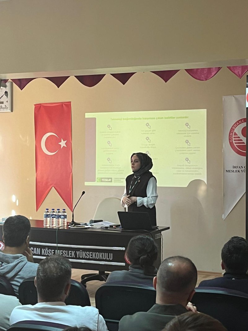Gümüşhane Üniversitesi İrfan Can Köse Meslek Yüksekokulu öncülüğünde Gümüşhane Yeşilay Danışmanlık Merkezi (YEDAM) iş birliğiyle öğrencilerimiz, akademik ve idari personelimize yönelik olarak, MYO konferans salonunda “Bağımlılıkla Mücadele” temalı bir bilgilendirme programı 17 Aralık 2025 tarihinde gerçekleştirildi.