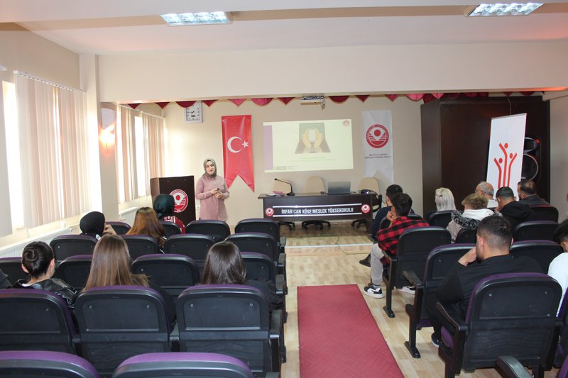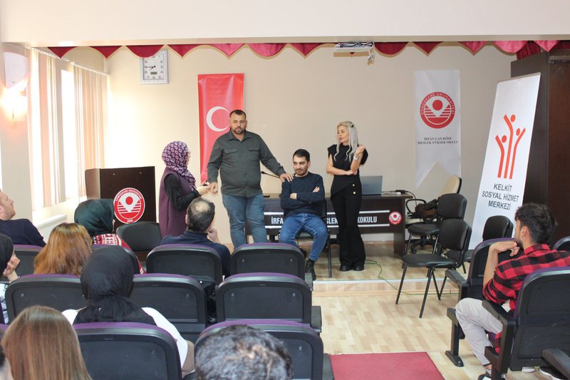 İrfan Can Köse Meslek Yüksekokulu ve Kelkit Sosyal Hizmet Merkezi iş birliğiyle, “Evlilikte İletişim ve Yaşam Becerileri ile Teknoloji Bağımlılığı” konulu seminer yüksekokulumuz konferans salonunda gerçekleştirildi. Müdür Yardımcılarımız Dr. Öğr. Üyesi Ramazan Eyüp GERGİN ve Dr. Öğr. Üyesi Eda TUTAK’ın da katılım sağladığı etkinlik, akademik personelimizin aktif katkılarıyla devam etti.