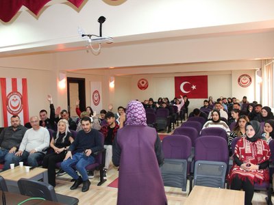 Seminere konuşmacı olarak katılan Psikolog Kübra DOĞAN ve Psikolog Ayfer YAZICI KARKAÇ, evlilik ilişkilerinde iletişim becerileri ile teknoloji bağımlılığı konularında önemli bilgiler sundular.
