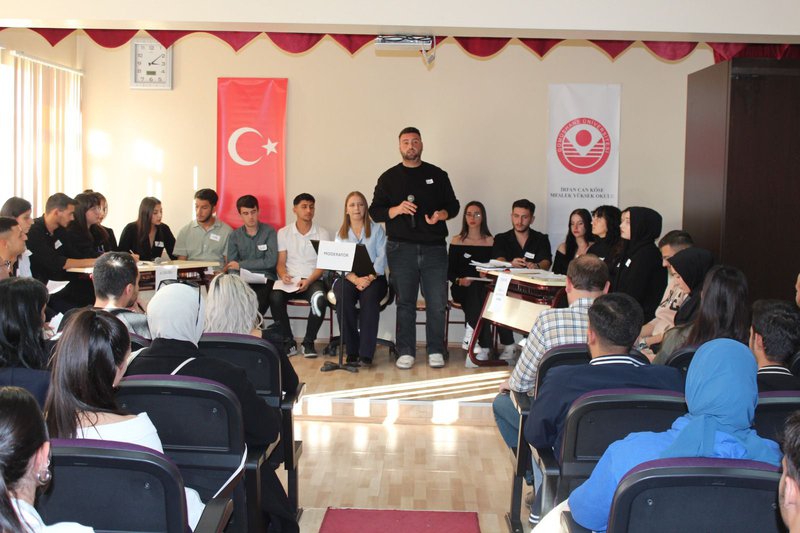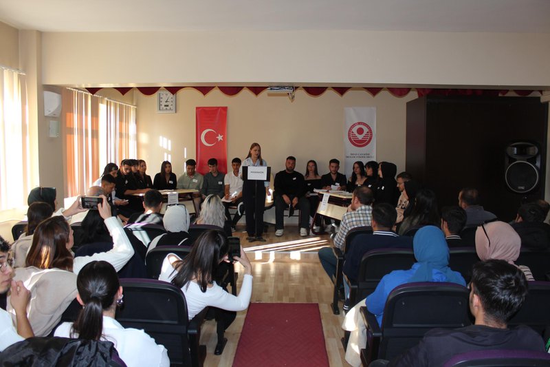 İrfan Can Köse Meslek Yüksekokulu Hukuk Bölümü Ceza İnfaz ve Güvenlik Hizmetleri Programı 2.sınıf öğrencileri tarafından Hukuk Bölüm Başkanı Dr. Öğr. Üyesi Eda TUTAK koordinatörlüğünde “İkinci Şansın Mantığı: Koşullu Salıverilme Üzerine Öğrenci Münazarası” adlı etkinlik 6 Kasım Çarşamba günü saat 15.00’te İrfan Can Köse Meslek Yüksekokulu Konferans Salonu'nda gerçekleştirildi.
