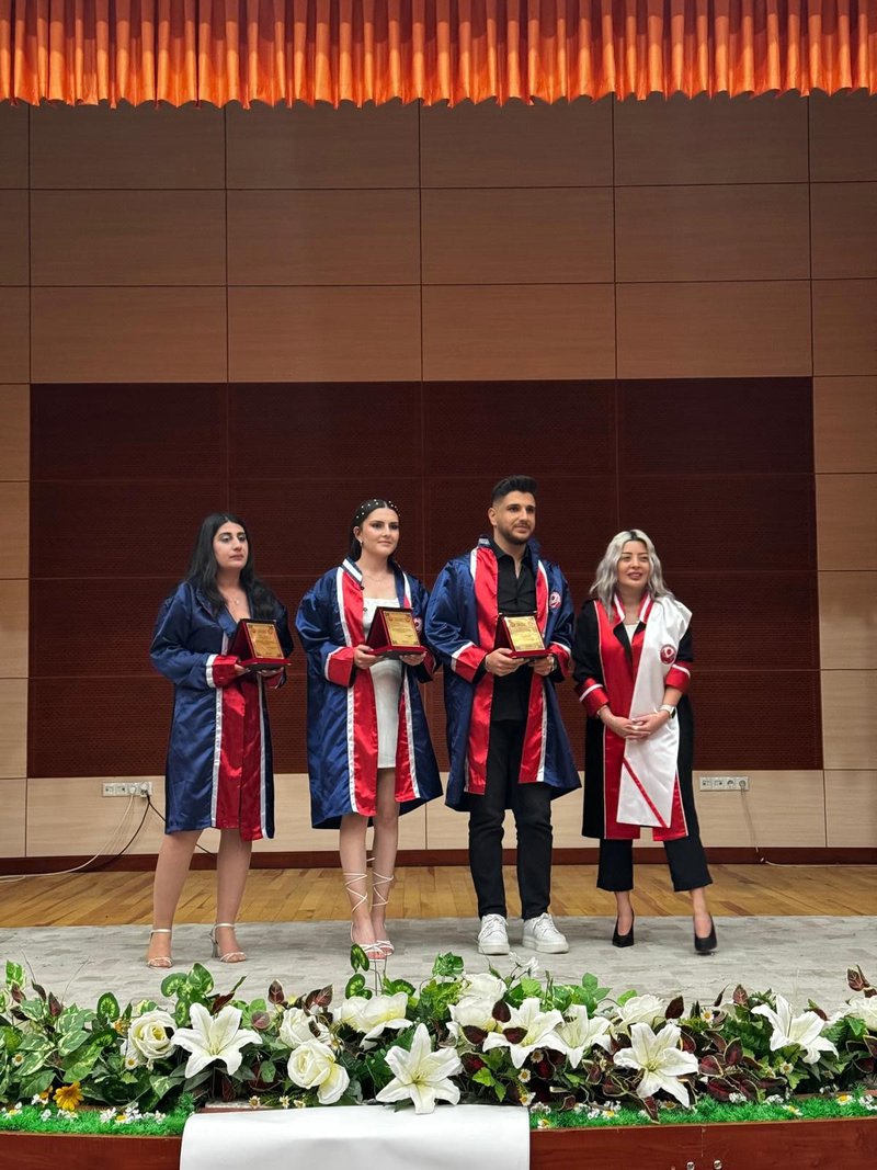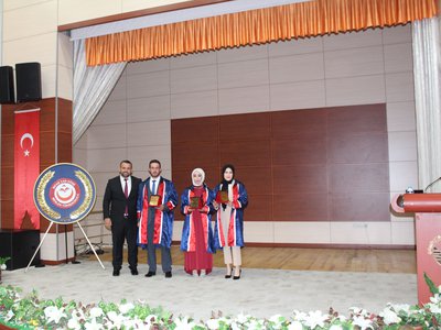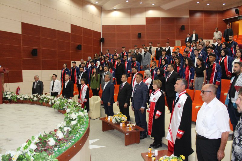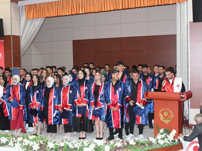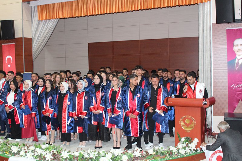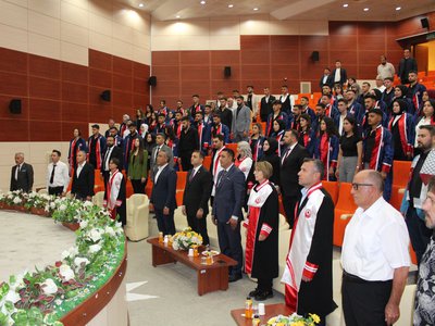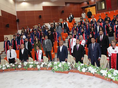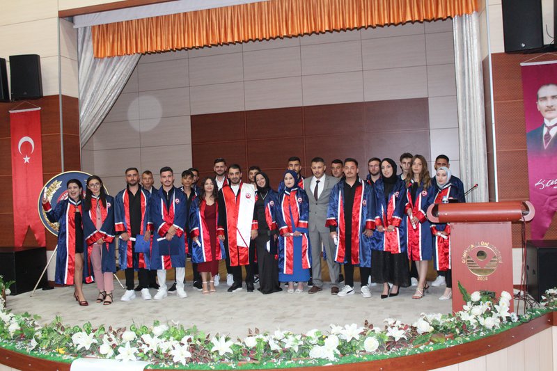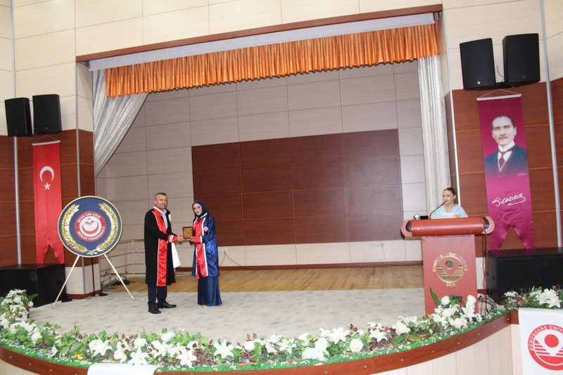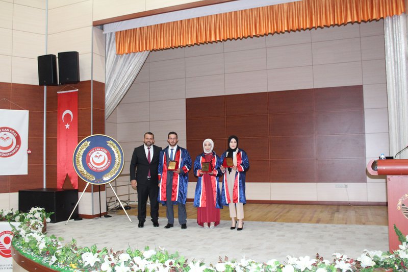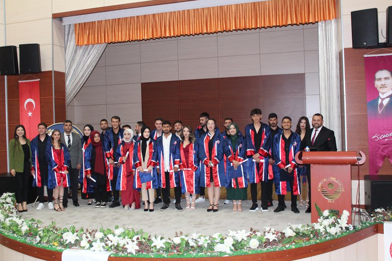 Protokol konuşmalarının ardından törenimiz Meslek Yüksekokulumuz’da ve bölümlerinde dereceye giren öğrencilerimize plaketlerinin verilmesi, mezun öğrencilerimize bölüm hocaları tarafından mezuniyet belgelerinin takdim edilmesi, mezuniyet yemininin okunması ve keplerin büyük bir coşkuyla atılması ile tamamlandı.