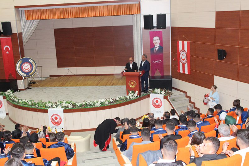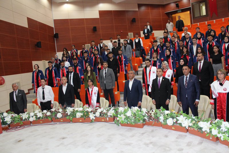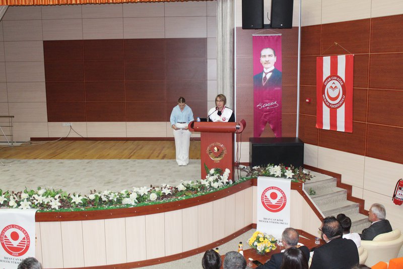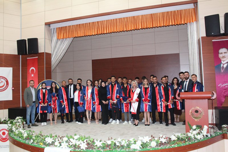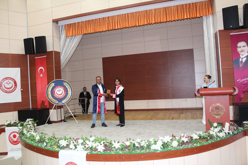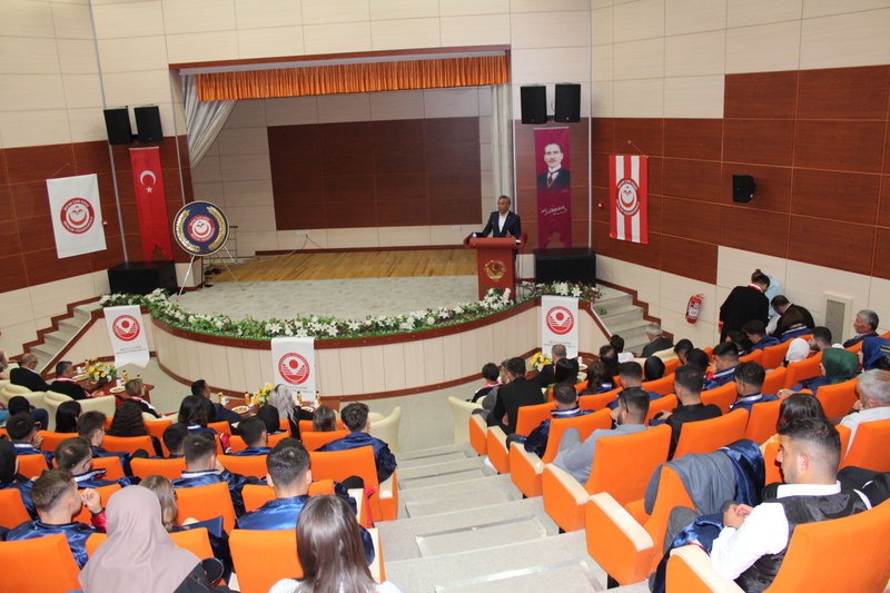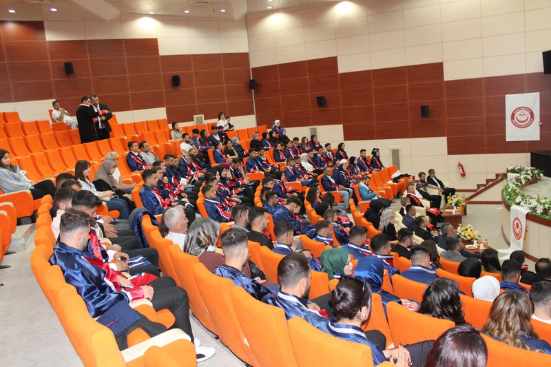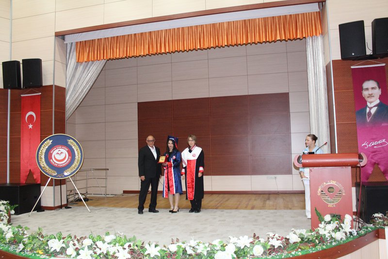 Protokol konuşmalarının ardından törenimiz Meslek Yüksekokulumuz’da ve bölümlerinde dereceye giren öğrencilerimize plaketlerinin verilmesi, mezun öğrencilerimize bölüm hocaları tarafından mezuniyet belgelerinin takdim edilmesi, mezuniyet yemininin okunması ve keplerin büyük bir coşkuyla atılması ile tamamlandı.