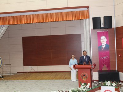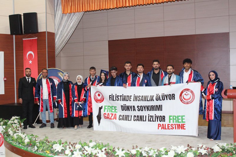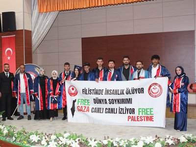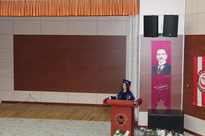 Mezuniyet törenimiz, Cumhuriyetimizin Kurucusu Ulu Önder Mustafa Kemal ATATÜRK ve silah arkadaşları ile aziz şehitlerimiz anısına saygı duruşu ve İstiklal Marşı’nın okunmasıyla başladı.Gümüşhane Milletvekillerimiz Sayın Musa KÜÇÜK ve Sayın Celalettin KÖSE tarafından mezuniyet törenimize gönderilen tebriklerin okunmasının ardından, törenimiz İrfan Can Köse Meslek Yüksekokulumuzun tanıtım filminin izlenmesiyle devam etti. Ardından Meslek Yüksekokulumuz 2023-2024 Akademik Yılını birincilikle bitiren Yönetim ve Organizasyon Bölümü Lojistik Programı öğrencisi Gülüzar BALTA, tüm mezun öğrenciler adına konuşmasını gerçekleştirdi.
