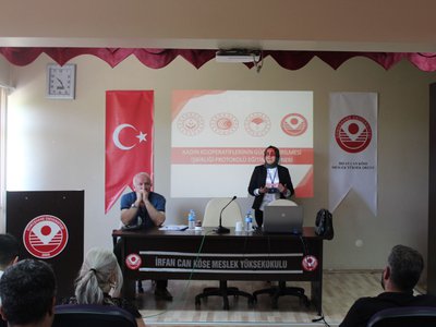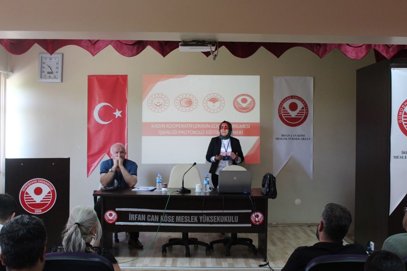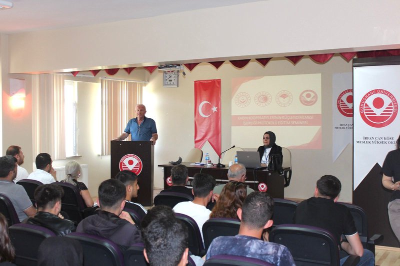 Gümüşhane Aile ve Sosyal Hizmetler İl Müdürlüğü (Kadın Hizmetleri Birimi) ve Gümüşhane İl Tarım ve Orman Müdürlüğü (Kırsal Kalkınma ve Örgütlenme Şube Müdürlüğü) tarafından İrfan Can Köse Meslek Yüksekokulu’nda üniversite öğrencilerine yönelik “Kadın Kooperatiflerinin Güçlendirilmesi İş Birliği Protokolü” kapsamında "Liderlik, Etkili İletişim ve Kadın Kooperatifçiliği” konulu eğitim semineri düzenlendi.
