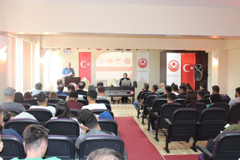 Meslek Yüksekokulumuz konferans salonunda gerçekleştirilen eğitim seminerine akademik personel ve öğrenciler tarafından katılım sağlandı. Gerçekleştirilen eğitim semineri kapsamında katılımcılara etkili iletişim ve liderlik konuları ile kadın kooperatifçiliği düzenlemeleri hakkında bilgilendirmelerde bulunuldu.