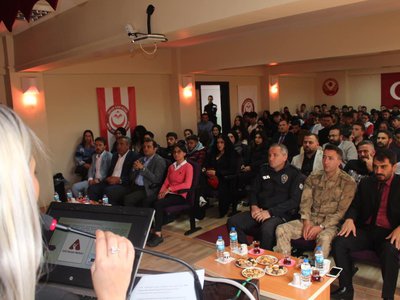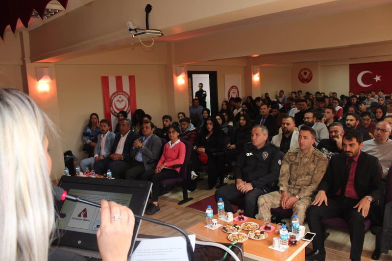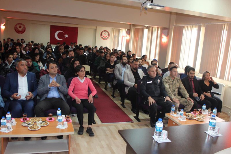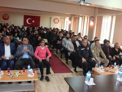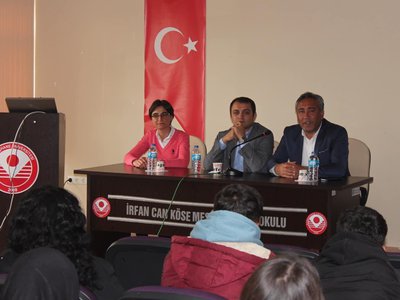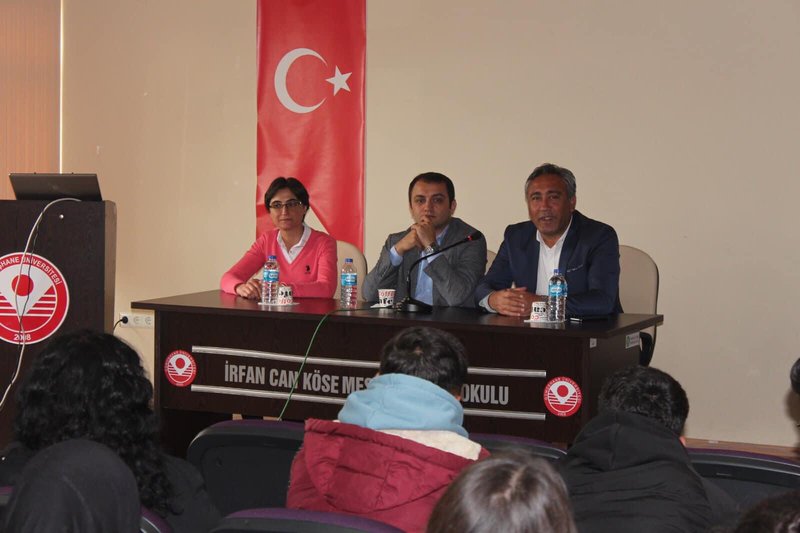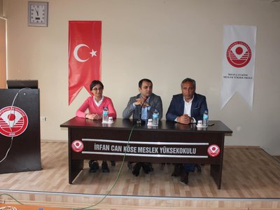 Protokol konuşmaları ile başlayan programımızda İrfan Can Köse Meslek Yüksekokulu’nun genel tanıtımı ve Meslek Yüksekokulumuz bünyesinde yer alan bölümler hakkında detaylı bilgiler verildi. Tanıtım ve bilgilendirme sunumlarının ardından öğrencilerimizden gelen sorular, Meslek Yüksekokulu Müdürümüz Prof. Dr. Sayın Duygu ÖZDEŞ, İlçe Kaymakamımız Sayın Hakan ÖZNAY ve İlçe Belediye Başkanımız Sayın Turgay KESLER tarafından yanıtlandı.