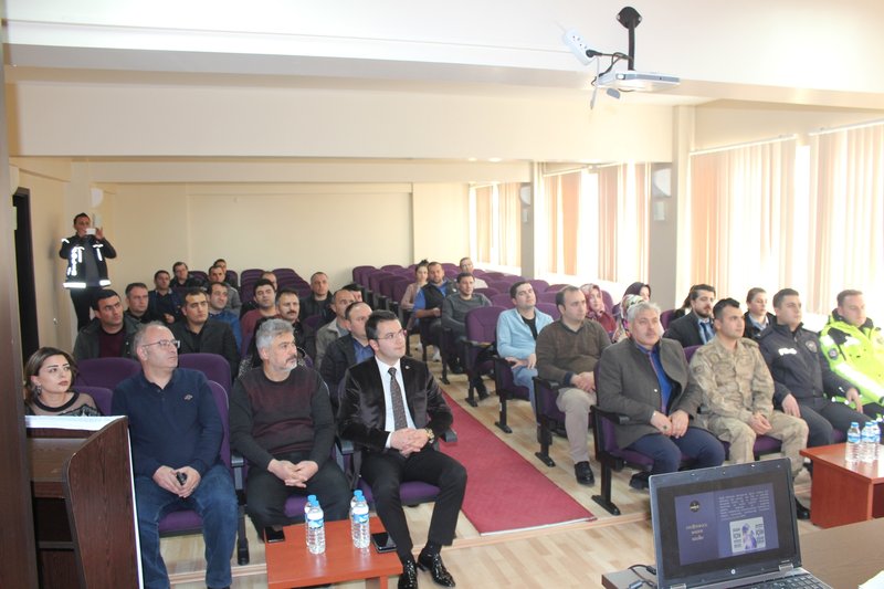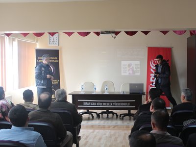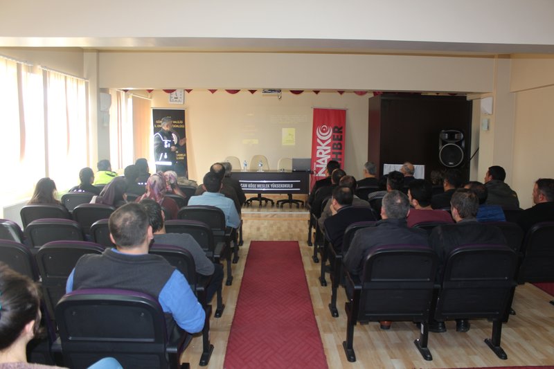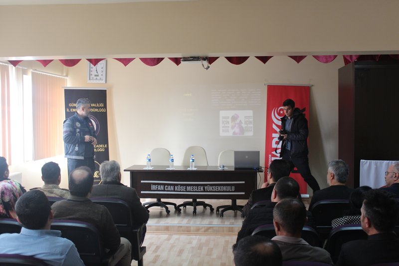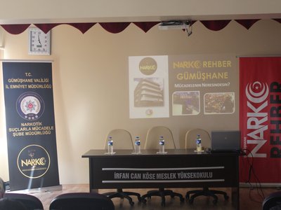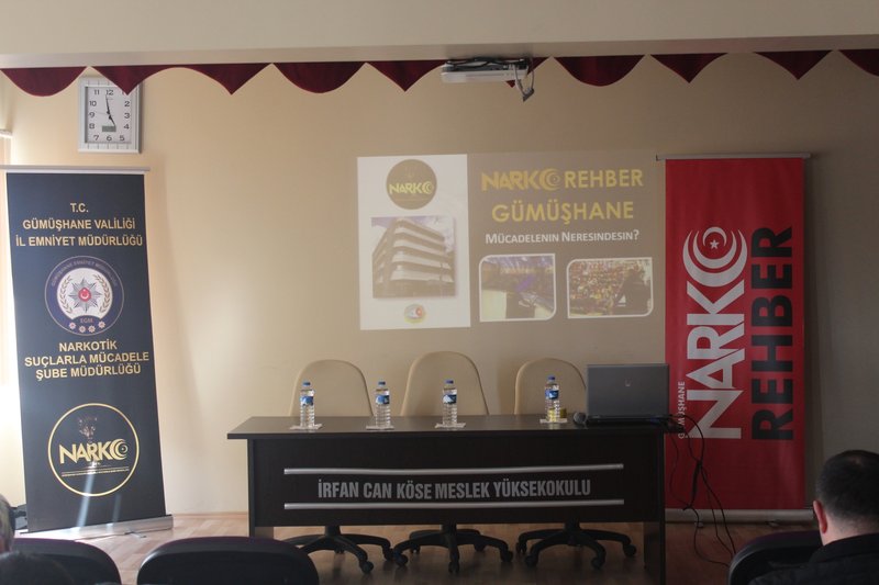 Meslek Yüksekokulumuz'da 20 Şubat 2020 tarihinde Gümüşhane Valiliği İl Emniyet Müdürlüğü Narkotik Suçlarla Mücadele Şube Birimi tarafından ''Uyuşturucu ile Mücadele'' semineri düzenlendi. Okulumuz akademik personeli, KYK Köse Öğrenci Yurdu personeli ve güvenlik görevlilerine yönelik düzenlenen programa İlçe Kaymakamımız Sn. Ömer Faruk CANPOLAT, Köse Meslek Yüksekokulu Müdürümüz Doç.Dr. Sayın Ahmet Mutlu AKYÜZ ve ilçe protokolü de iştirak etti. Program sonunda Sn. CANPOLAT, emeği geçenlere ayrı ayrı teşekkürlerini iletti.